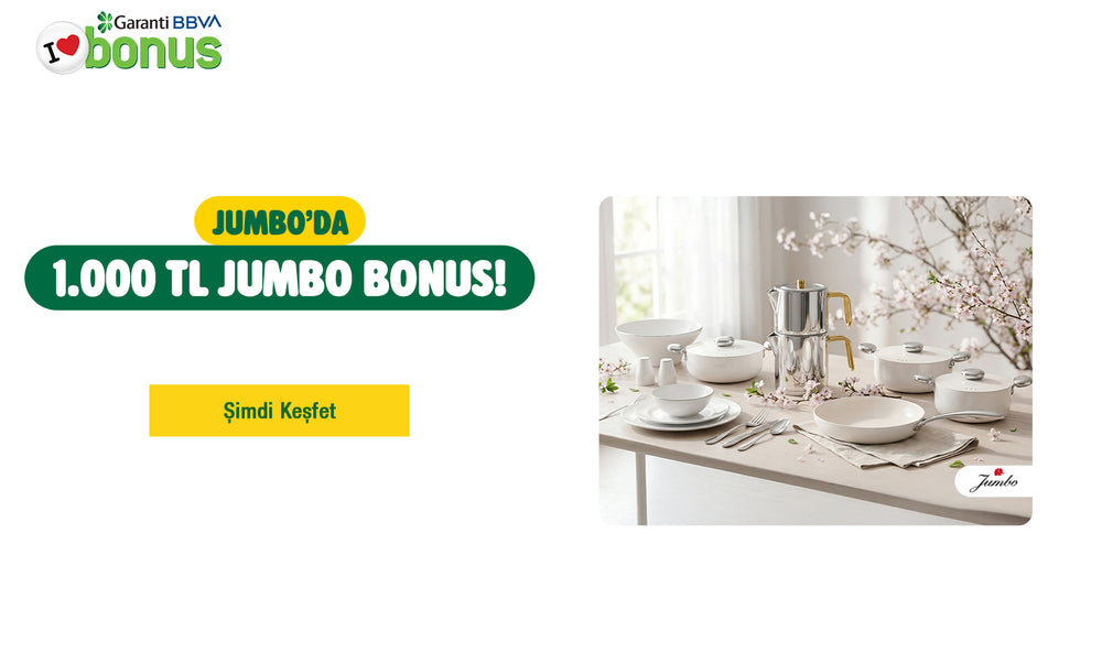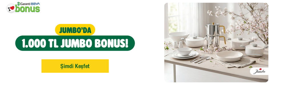 •Jumbo'dan tek seferde yapılacak 7.500 TL ve üzeri alışverişlerde 1.000 TL Jumbo bonus kazanılacak olup bir sonraki alışverişte kullanılabilecektir.