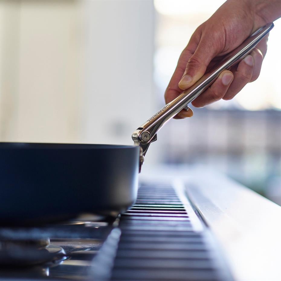 Space Serisinin en dikkat çekici özelliklerinden biri, katlanabilir paslanmaz çelik kulplarıdır. Bu kulplar, 20 yıllık kullanım ömrüne sahip SwingLock™ teknolojisiyle tasarlanmıştır ve ürünlerin boyutunu standart tencere ve tavalara göre %50'ye kadar azaltır. Bu sayede mutfak dolaplarınızda daha fazla yer açabilir ve ürünlerinizi kolayca saklayabilirsiniz.