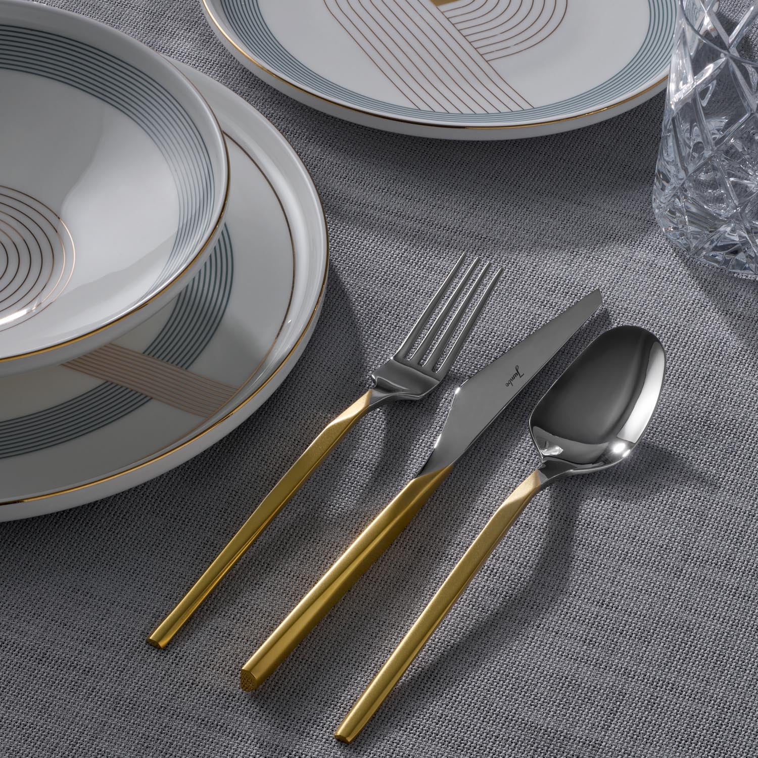 Jumbo 5100 Quartz Mat Altın 12 Kişilik 84 Parça Çatal Kaşık Bıçak Takımı
