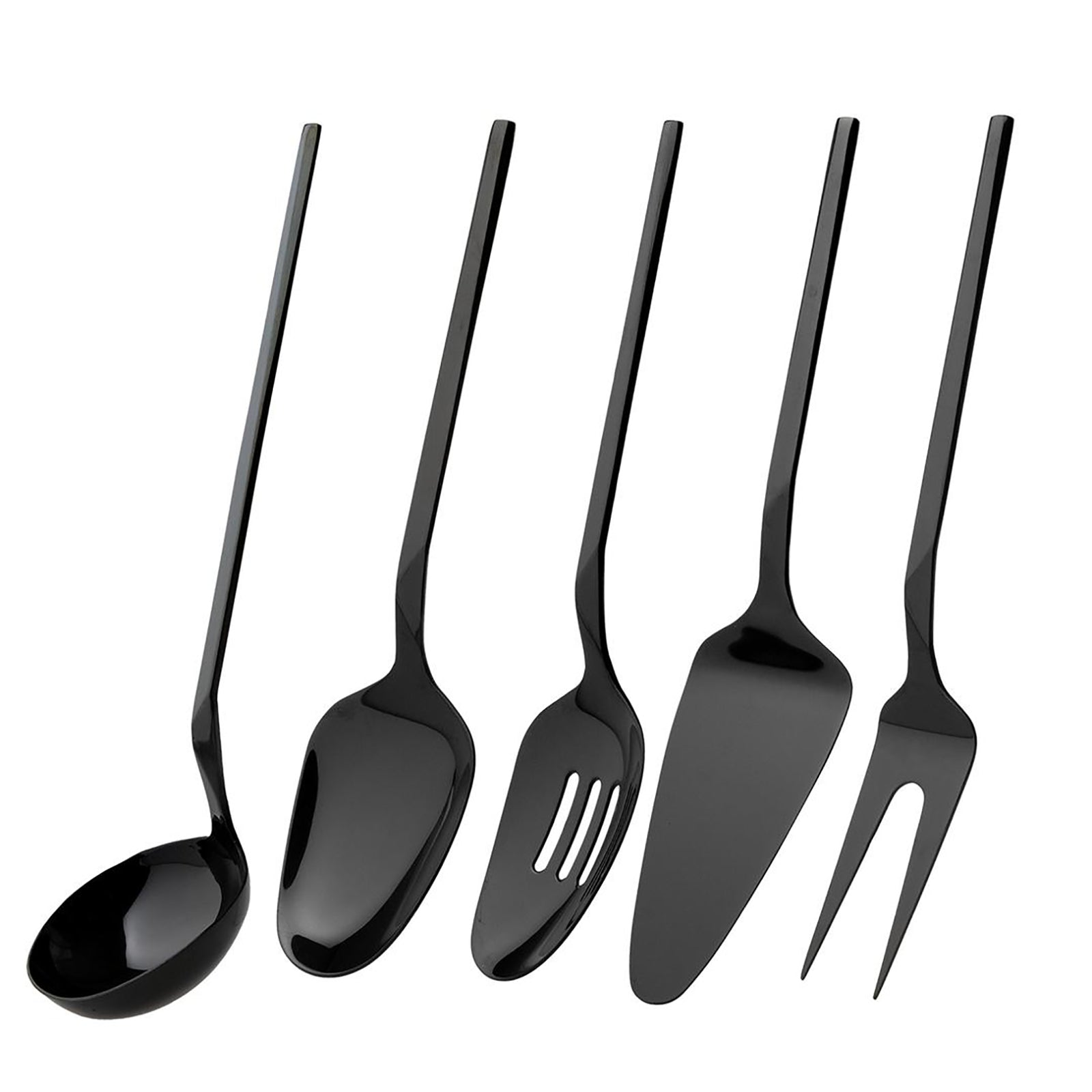 5 parçadan oluşan Jumbo 5100 servis seti, her çeşit yemeği rahatlıkla servis edebilmenize yardımcı oluyor. Set içerisinde servis çatalı, kaşığı, pasta küreği, çorba kepçesi ve yemek kevgiri yer alıyor. Her bir parça özenle tasarlanmış olup ergonomik bir yapıya sahip. Böylece kolay bir şekilde yemek sunumu yapabilmenizi sağlıyor. Siyah rengi sofralarınıza zarif bir dokunuş katarak misafirlerinizi etkileyebilmenize yardımcı oluyor. Siyah rengi diğer sofra gereçleri, çatal, kaşık, bıçak takımlarınız ile de kolaylıkla uyum sağlayabiliyor. Dolayısıyla sofra bütünlüğünüz bozulmadan harika sofralar hazırlayabilirsiniz. Siz de Jumbo 5100 titanyum siyah servis setiyle unutulmaz sofralar hazırlayabilir, sevdiklerinizle keyifli ve rahat servis yağabildiğiniz sofralarda buluşabilirsiniz.