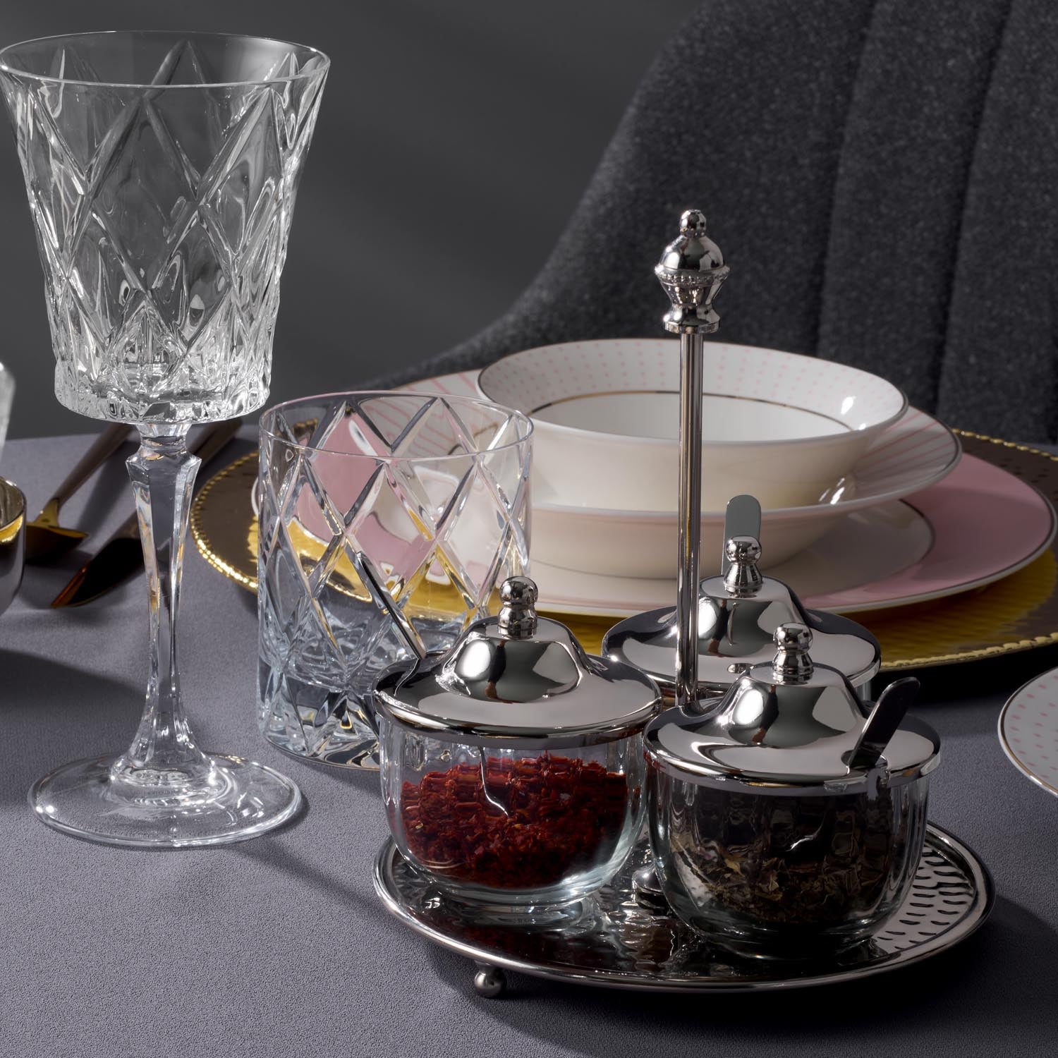 Jumbo Alula Standlı 3'lü Baharat Seti 16,5x16,5x18,5 cm