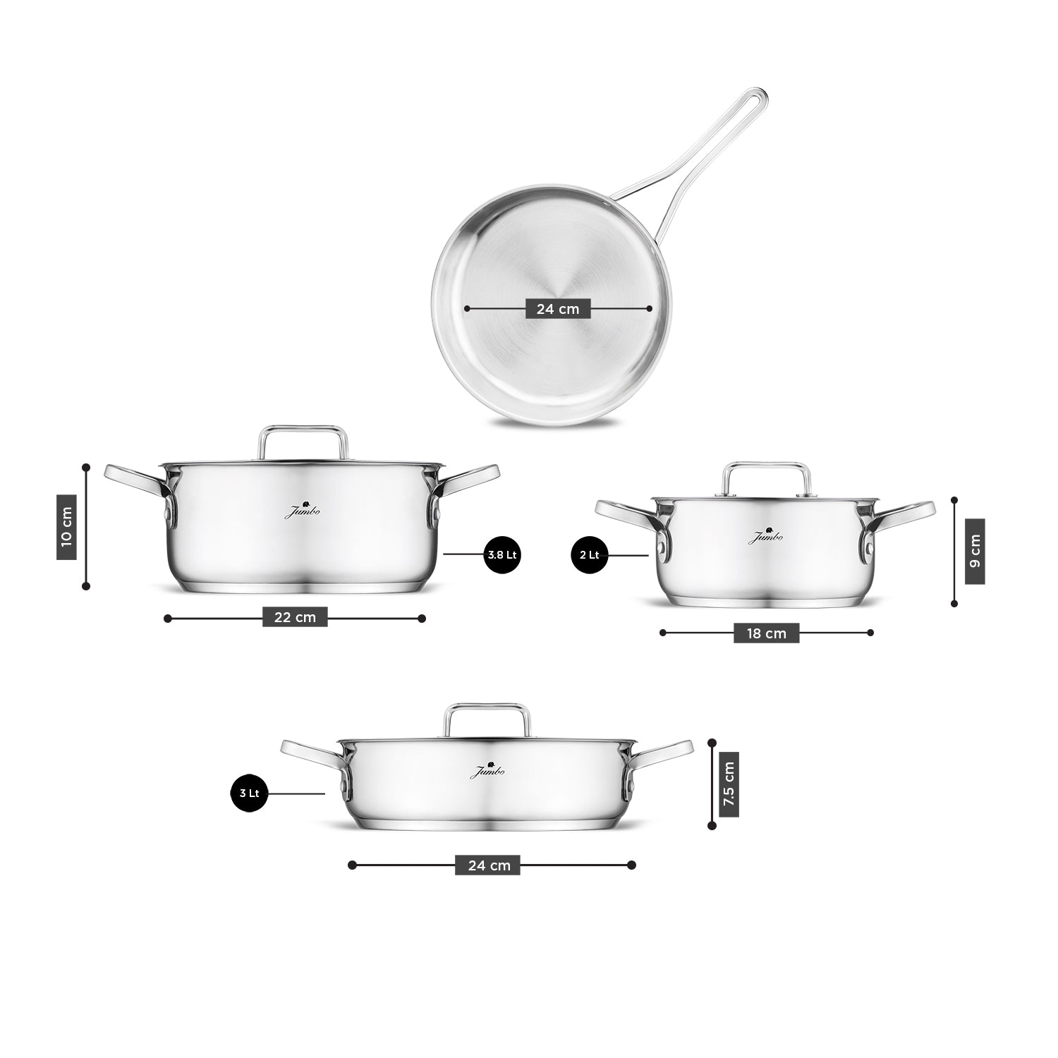 Jumbo Capello 7 Parça İndüksiyon Tabanlı Tencere Seti