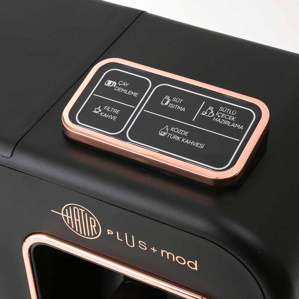 Tek seferde 10 fincan içecek hazırlama kapasitesine sahip makineniz, filtre kahve veya çay demlerken eş zamanlı olarak köz tadında Türk kahvesi ve sütlü içecek hazırlama özelliğiyle dünyada ilk ve tek! Günün farklı zamanlarında farklı lezzetler tatmak, tüm ailenize ve misafirlerinize kolayca ikram hazırlamak için tasarlanan Hatır Plus Mod şimdi sizin gibi çok yönlü.