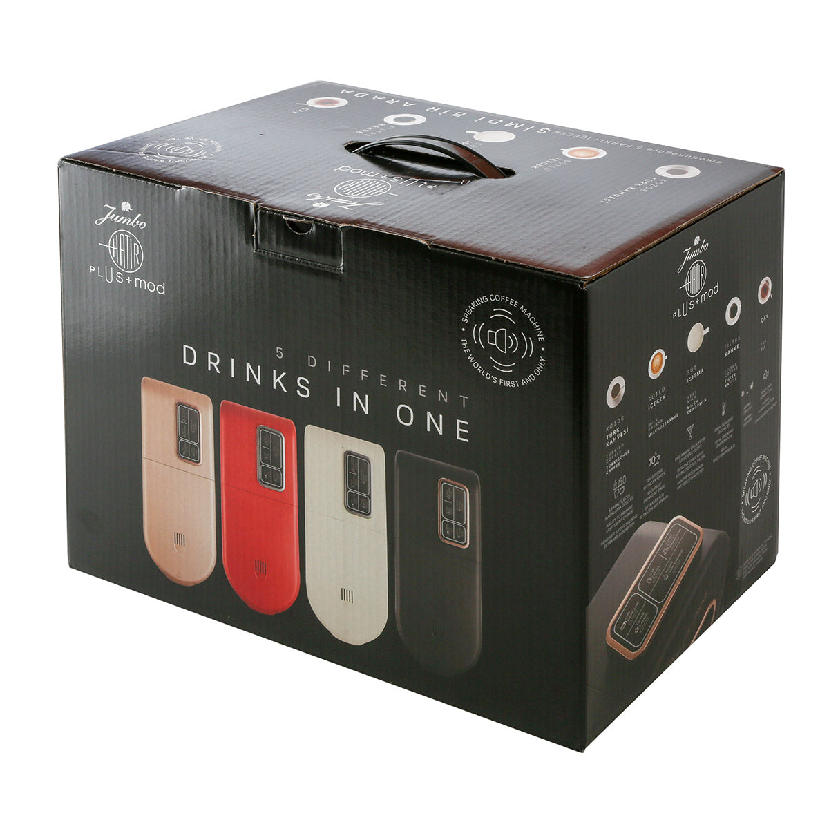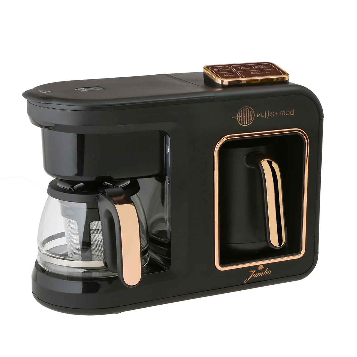 Jumbo Hatır Plus Mod ile modunuza göre filtre kahve, çay, süt ısıtma, sütlü içecek hazırlama ve közde Türk Kahvesi yapabilirsiniz.