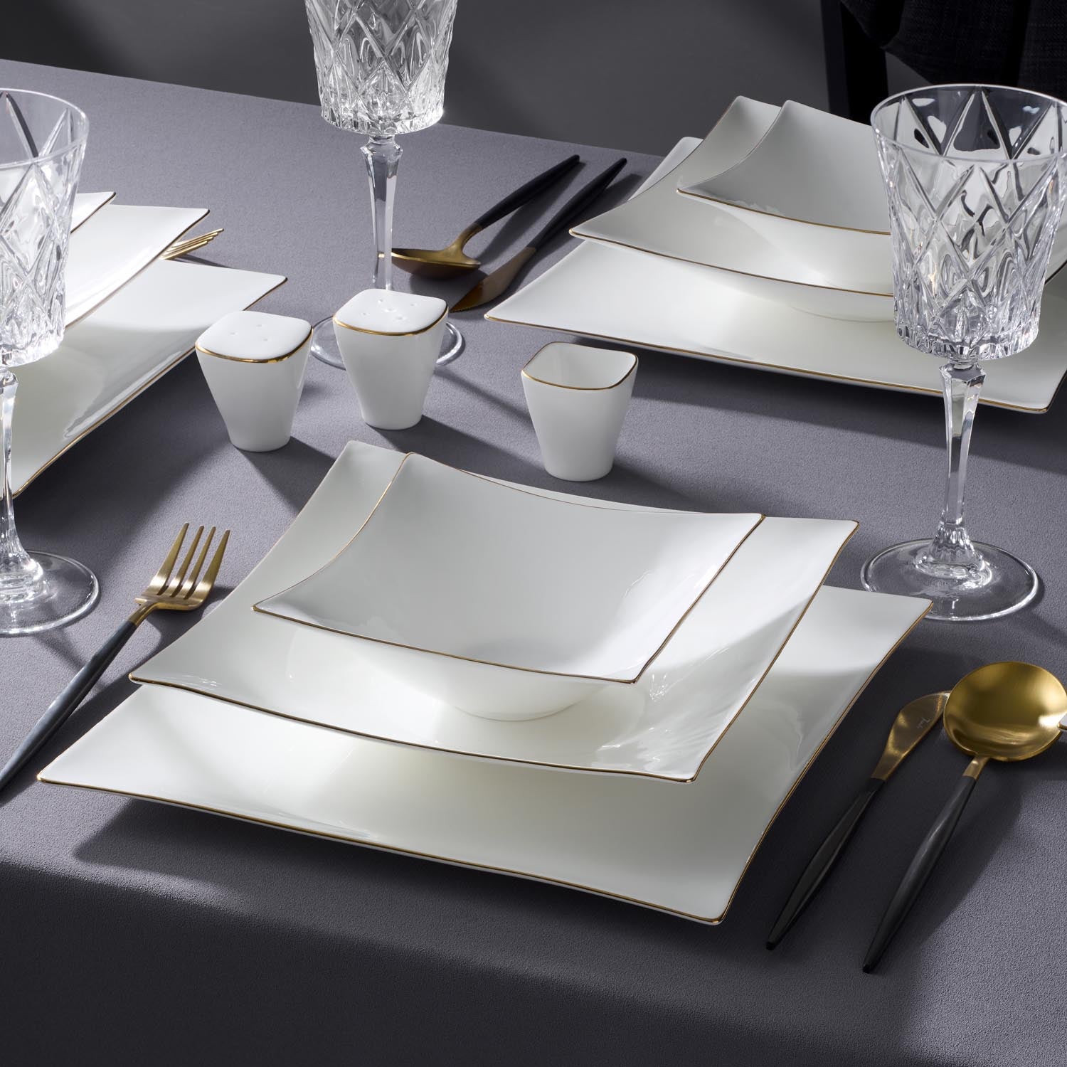 Jumbo Wind Gold 64 Parça 12 Kişilik Kare Yemek Takımı
