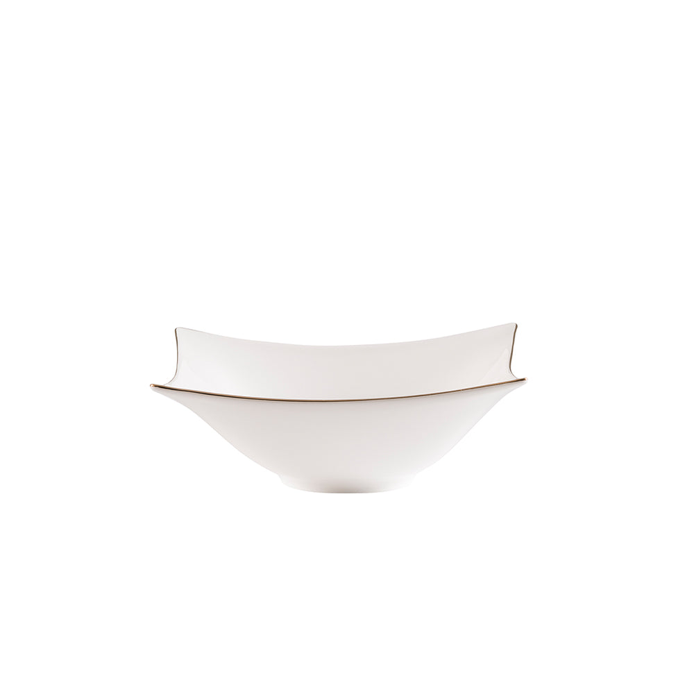 En şık davet sofralarının baş tacı olmaya aday Jumbo Wind Gold yemek takımı, eksiksiz parçaları ve hayran bırakan tasarımıyla karşınızda. Geleneksel olarak oval ya da yuvarlak formlarda tasarlanan yemek takımlarına adeta meydan okuyan bu ürün, kare formu sayesinde yerleştirildiği sofranın ilk bakışta harika bir deneyim yaratacağının sinyalini veriyor. Çorba kasesinden meze tabağına, biberliğinden çorba tenceresine kadar her bir parça kare formda tasarlandığı için set kendi içerisinde harika bir uyum yaratıyor. Tamamı beyaz renkte olan bu takımın kenar kısımlarında minimalist gold çizgiler hakim. Kısacası her bir detayı ile mükemmelliğin simgesi olan bu yemek takımıyla siz de misafirlerinizi sofranıza hayran bırakabilirsiniz.