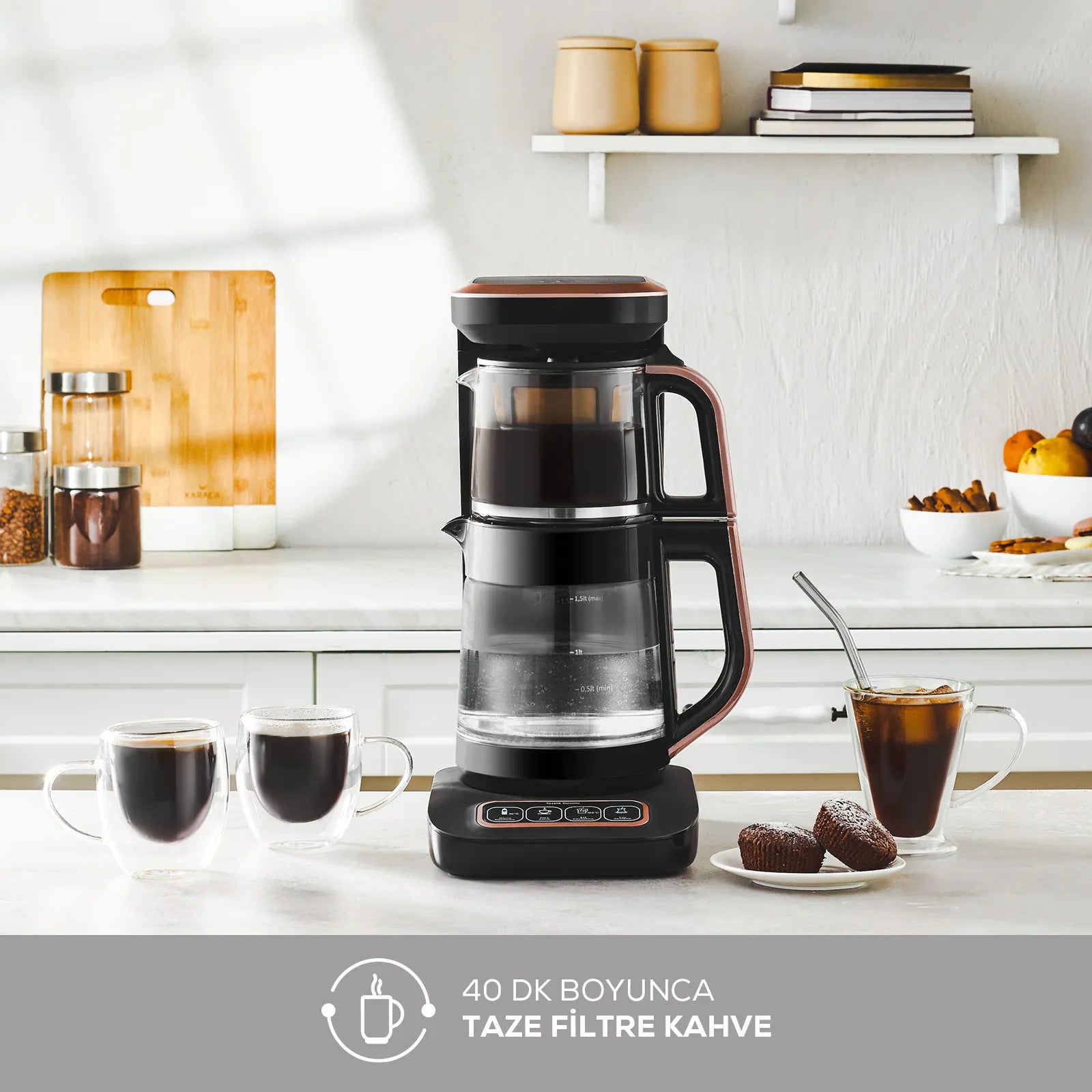 Otomatik sıcak tutma özelliği ile çay ya da kahve keyfiniz boyunca çayınızı, kahvenizi ve suyunuzu sıcak tutar.