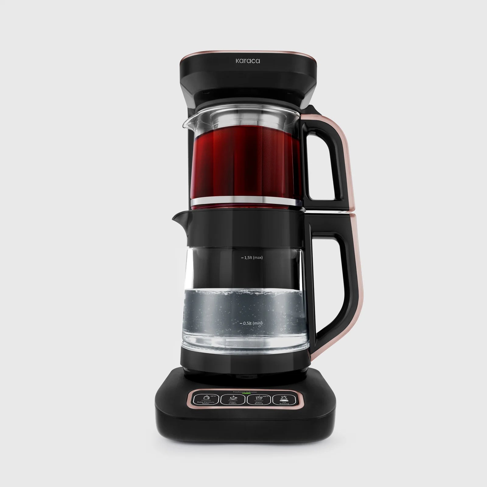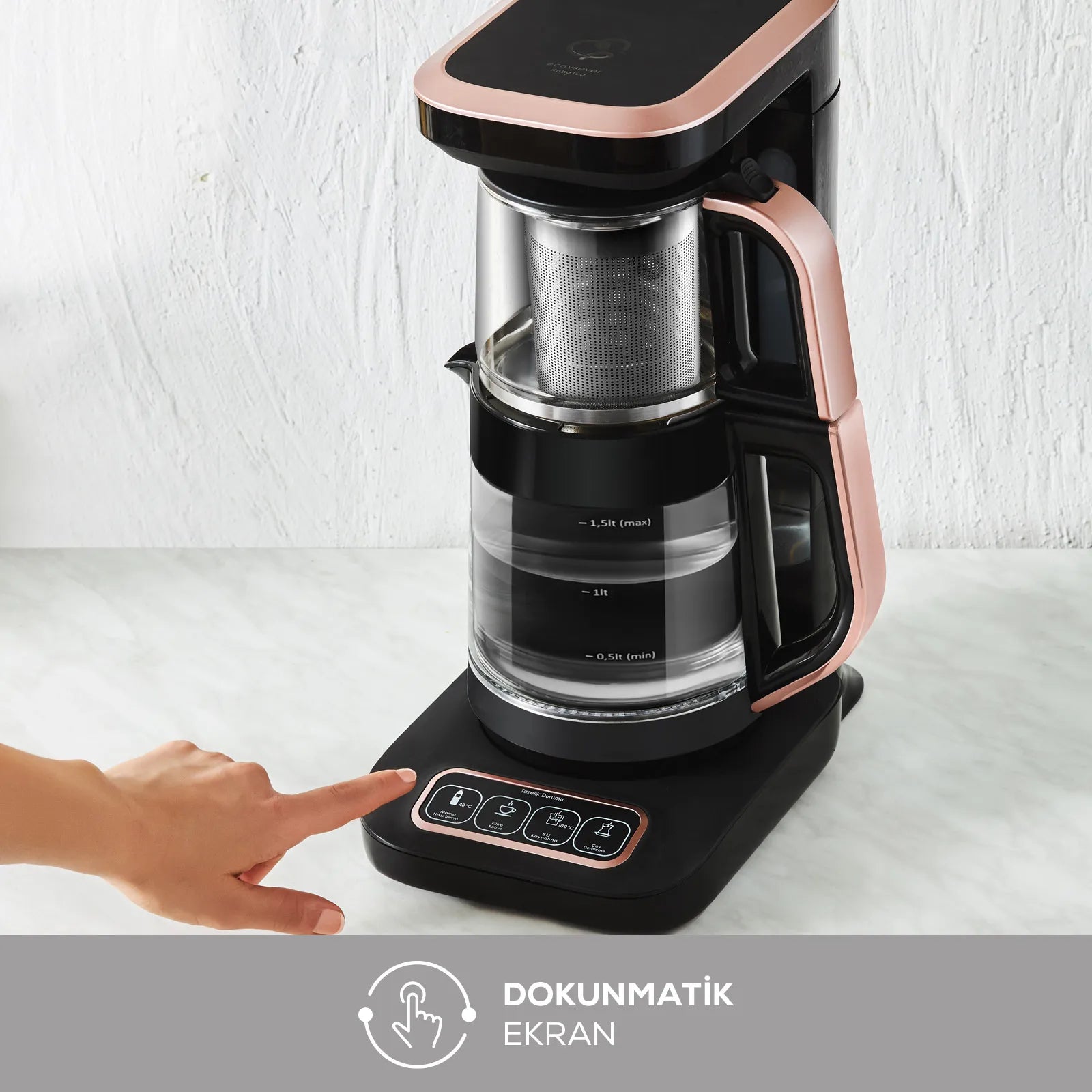 Tüm bu rahat kullanımın yanında, çay demliği ve su ısıtıcısının cam yapısı sayesinde sağlıklı ve uzun ömürlü bir kullanım sunar.