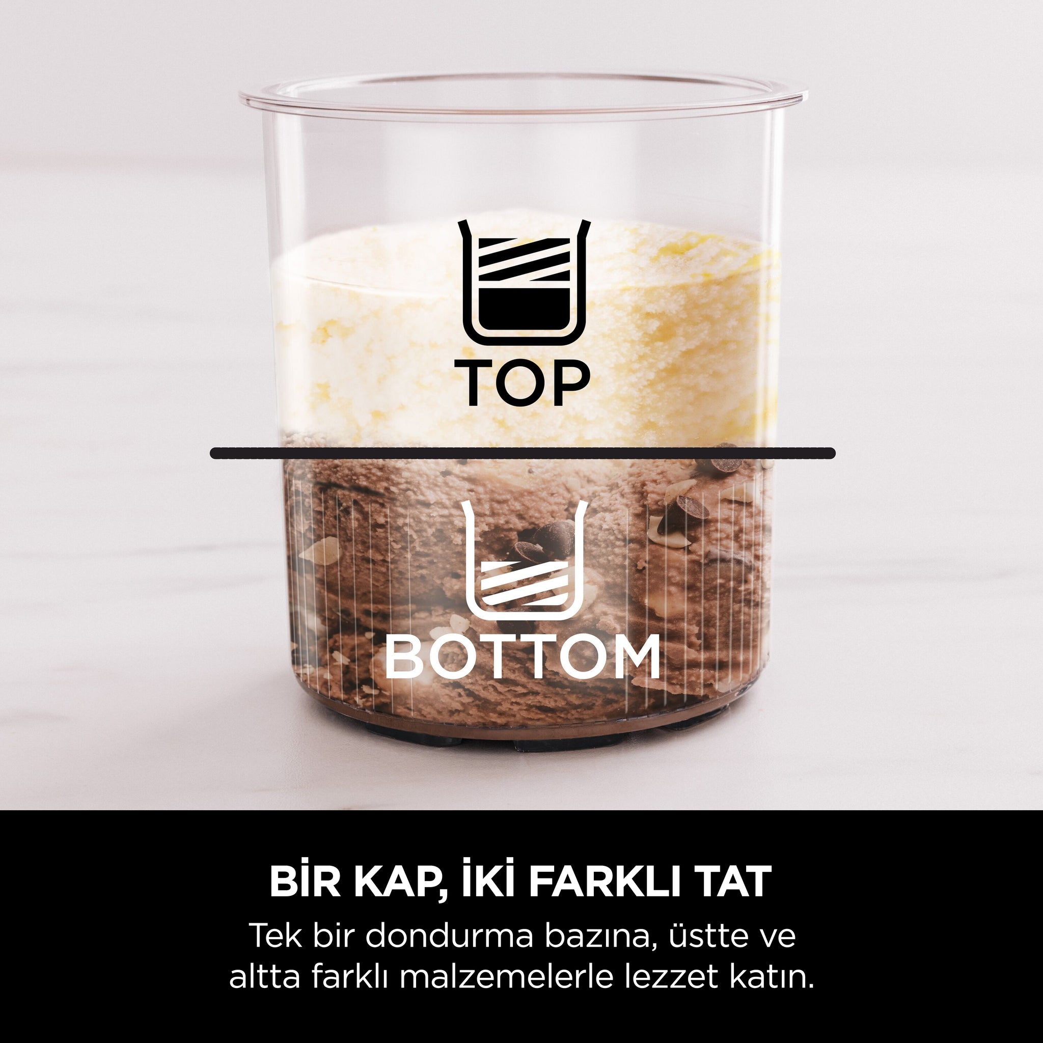 Dört basit adımda bir CREAMi ikramı oluşturun. Basitçe tabanınızı hazırlayın, 24 saat boyunca dondurun, işleyin ve tadını çıkarın! Kullanışlı Geri Sayım Sayacı size kaç dakika kaldığını söyler ve eseriniz hazır olduğunda yanar. Anında bir ziyafet mi istiyorsunuz? Gece boyunca dondurmaya gerek kalmadan şimdi tadını çıkarmak için milkshake'ler oluşturun.Profesyonel ipucu: En sevdiğiniz aromaları önceden dondurmak için ekstra hazneler kullanın, böylece canınız ne zaman isterse dondurulmuş bazlar her zaman elinizin altında olur.Bir sonraki milkshake veya dondurulmuş yoğurt için temizlik mi yapmanız gerekiyor? Kaplar, kapaklar ve kanat, temizliği kolaylaştırmak için üst raf bulaşık makinesinde yıkanabilir veya sabunlu suyla elde de yıkayabilirsiniz.
