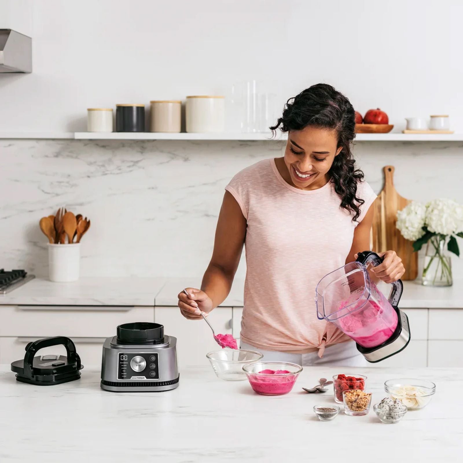 Favori smoothie'lerinizin tüm lezzetlerini bir öğüne dönüştüren bu süper kalın karışımlar, lezzetli dondurulmuş meyveler, nefis üst malzemelerle yapılır ve kaşıkla yenir. Katmanlar, lezzetler ve üst malzemelerle yaratıcılığınızı konuşturun. Devrim niteliğindeki Smart Torque blenderlar sayesinde, smoothie kaseleriniz için mükemmel kalınlıkta bir taban oluşturmak artık çok kolay.
