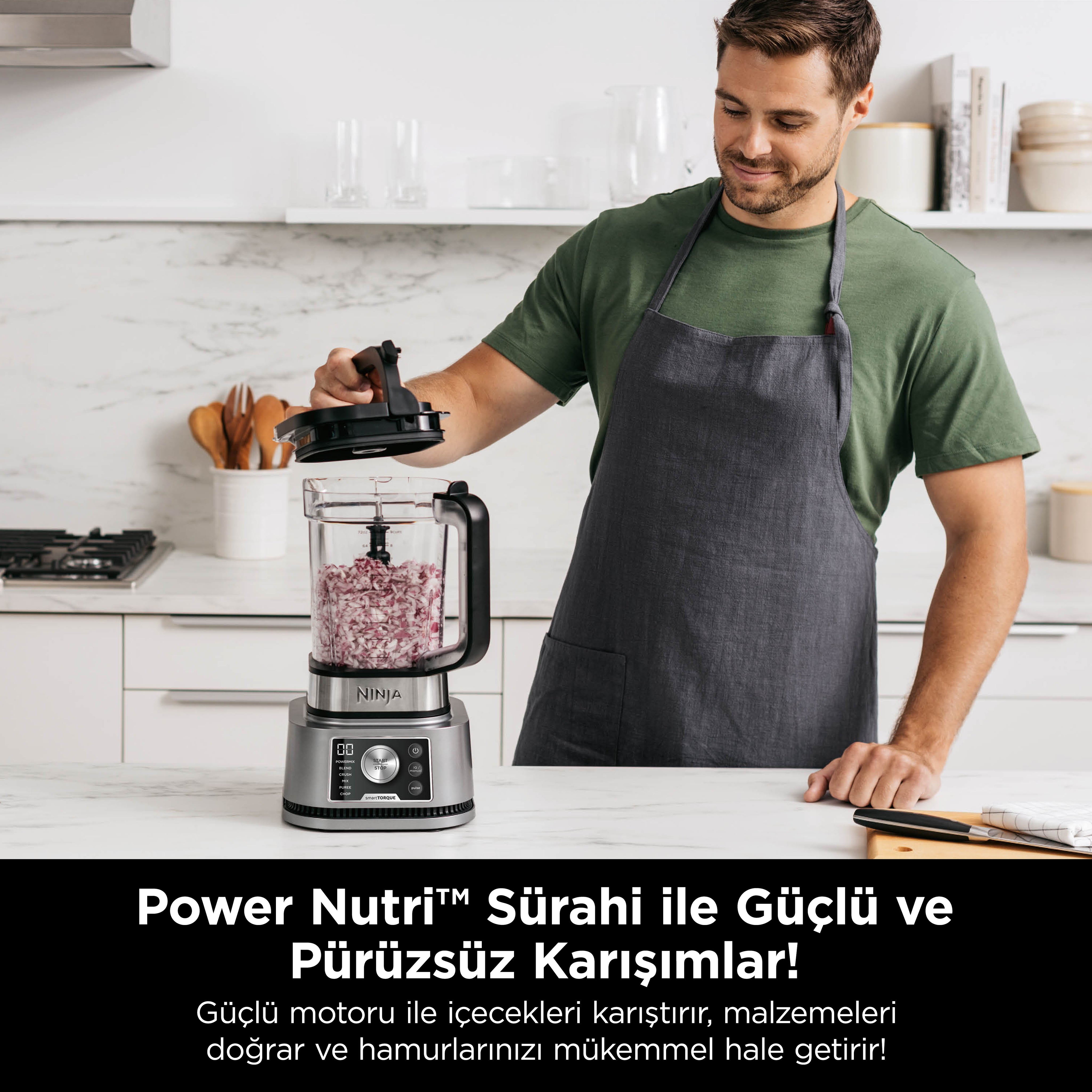 Devrim niteliğindeki bu Ninja blender, 3 ürünü bir araya getiriyor. 2,1 L Power Nutri Sürahisi'nde doğrayın, karıştırın ve harmanlayın; smoothie'lerden soslara, içeceklerden salsa ve hamurlara kadar her şeyi yapın. 700 ml Power Nutri Bardak'ta tek servislik içecekler ve soslar hazırlayın. Devrim niteliğindeki 400 ml Power Nutri Kase'nizi kullanarak smoothie kaseleri ve fındık ezmeleri gibi daha kalın dokular oluşturun. Güçlü 1200 W motoru, Smart Torque ve Auto-iQ özelliği ile donatılmış bu blender, hafif ve ipeksi dokulardan kalın ve sürülebilir kıvamlara tek bir düğmeye dokunarak geçmenizi sağlar.