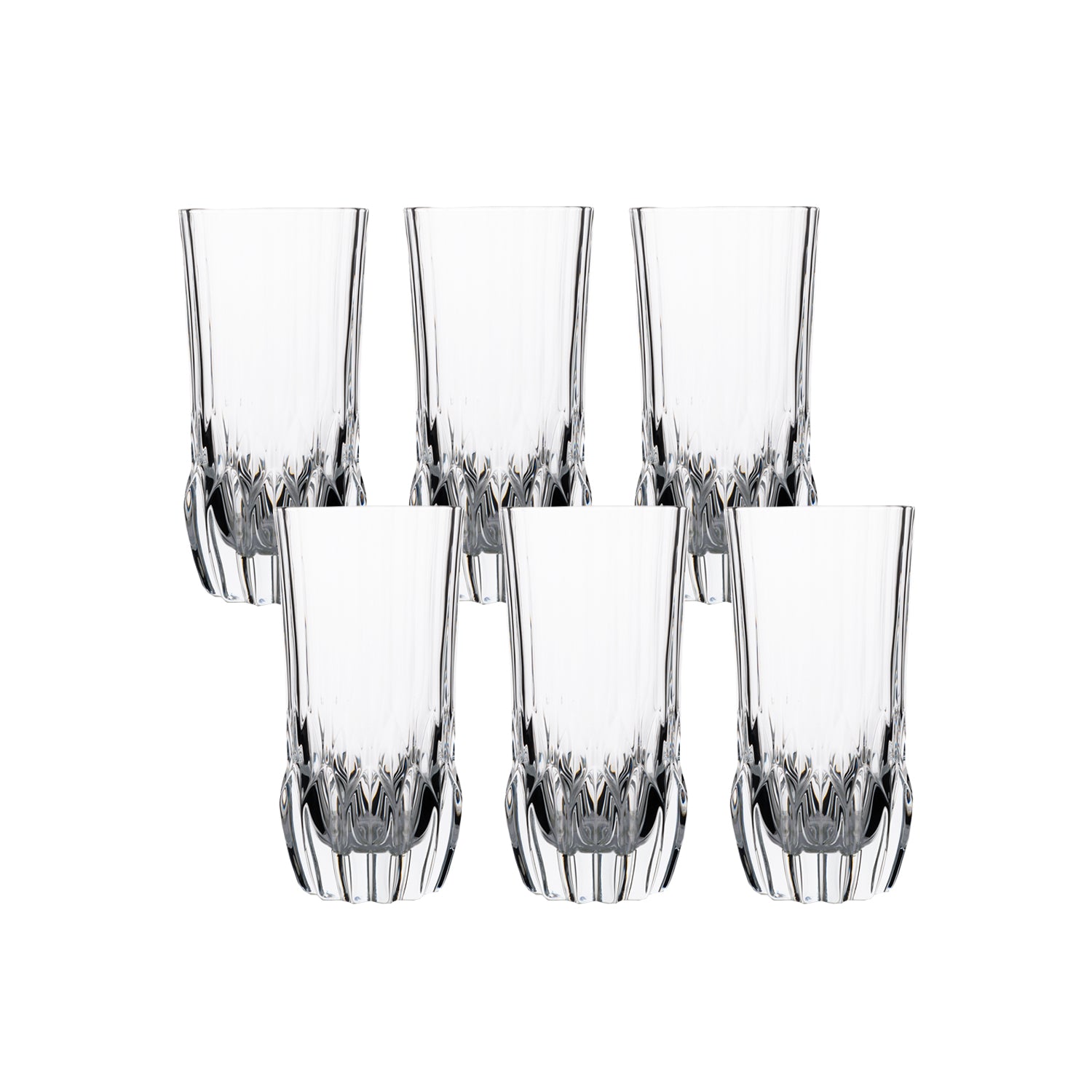 RCR Adagio 6'lı Meşrubat Bardağı, Luxion® camın parlaklığını artırmak için tabanına derin kesiklerle sahip özel bir tasarıma sahiptir.