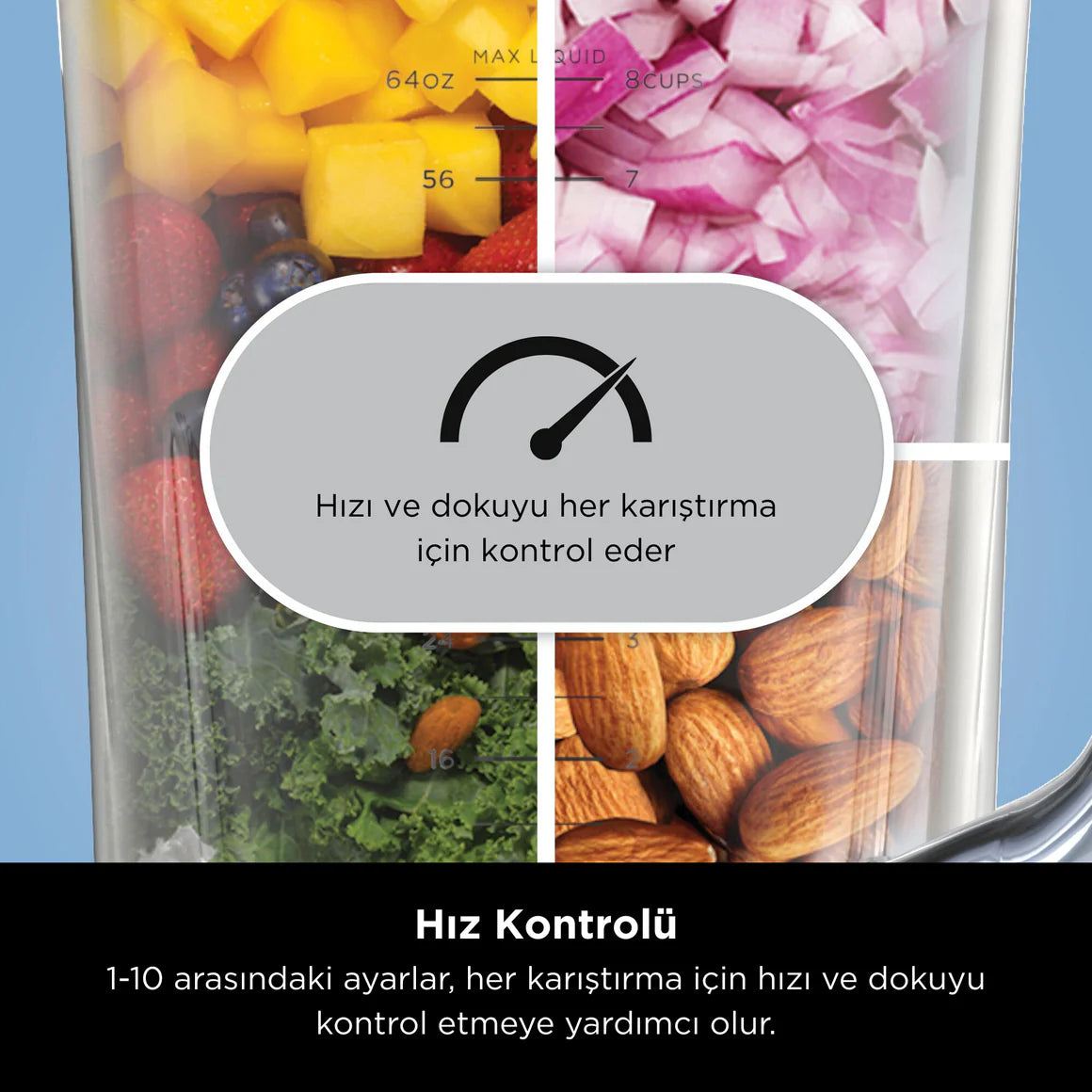 Ninja’nın en akıllı blender’ı, hangi karışım olursa olsun doğru ve kişiselleştirilebilir sonuçlar için hızı ve süreyi otomatik olarak ayarlar.