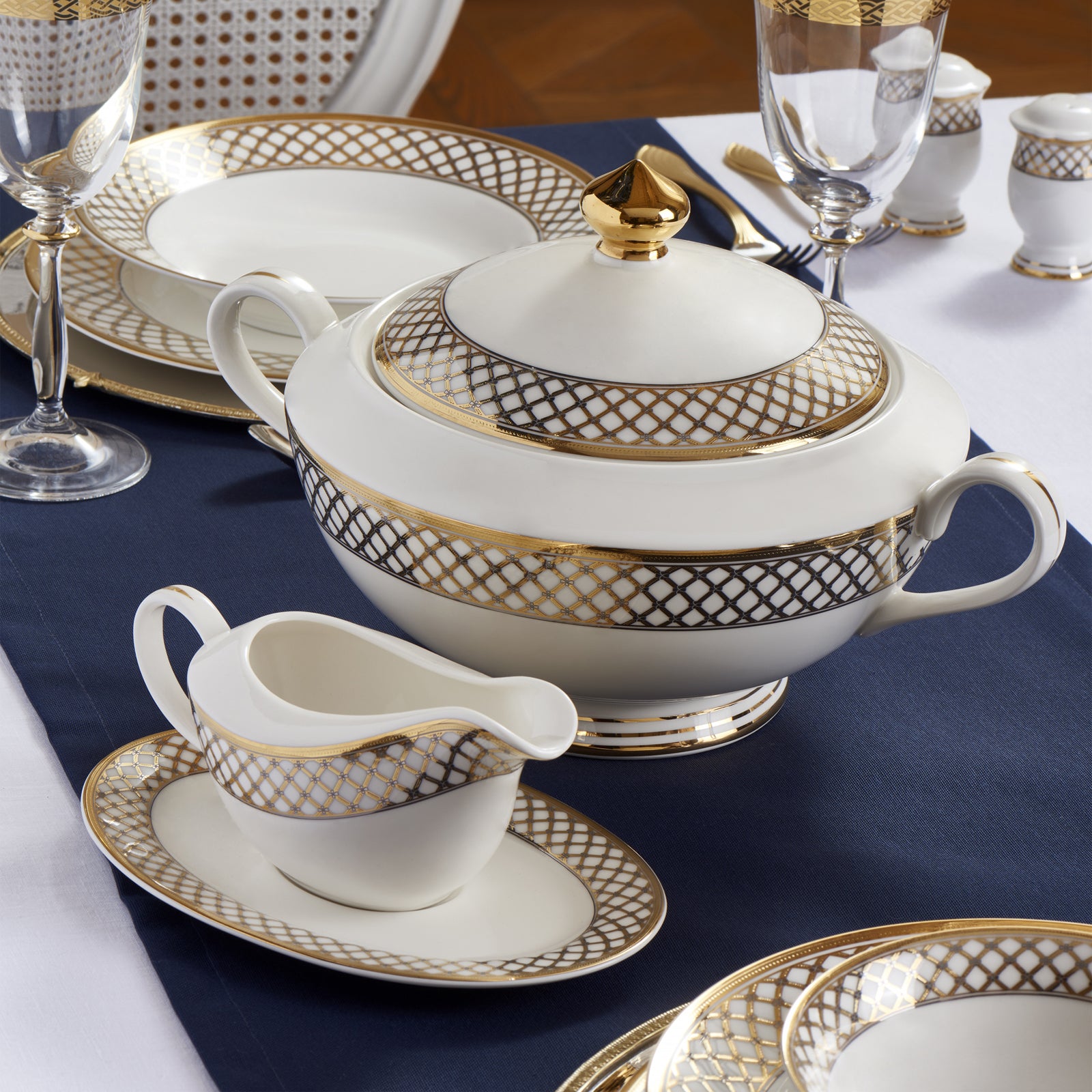 Gelenek ve tecrübeyle hayat bulan porselenler Alman kültürel mirasıyla, zarafet, asalet ve zamansız güzelliği birleştiren, her tasarımında bir hikaye anlatıyor. Barok sanatının en iyi altın vurgularını, kabartma desenlerin ihtişamlı çizgisini, saraylara özgü özel dokunuşunu yansıtıyor. Usta zanaatkarların ellerinden çıkan çarpıcı motifler, günümüzün modern ve asil beyaz porselen dokusuyla birleşerek saray ihtişamını kuşaktan kuşağa aktarıyor.